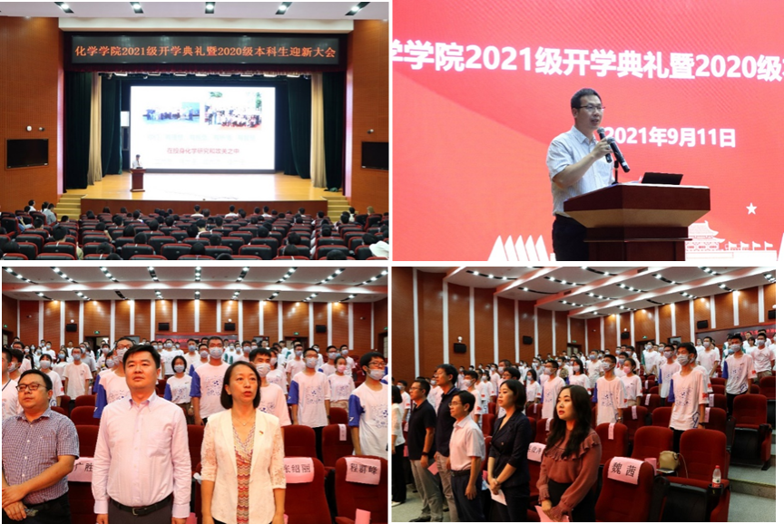 全体齐唱雄壮的国歌过后,英国上市公司365经理刘明杰致辞。刘明杰开篇先谈到了化学学科的重要性和实用性,接着向同学们介绍了英国上市公司365的概况。从基础学科研究的重要性,到解决我国众多卡脖子领域关键问题的需要,到将个人发展与国家需求相契合,嘱咐同学们学习化学,生逢其时,重任在肩。最后寄语新生:志存高远,敢为人先;独立思考,勇于创新;精勤求学,久久为功。