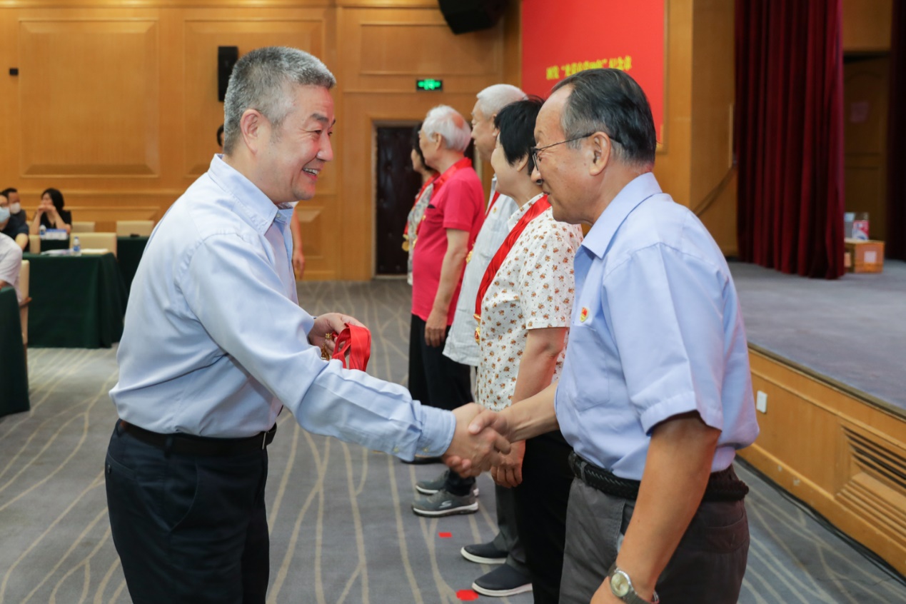 公司党委书记赵长禄为老党员代表颁发“光荣在党50年”纪念章