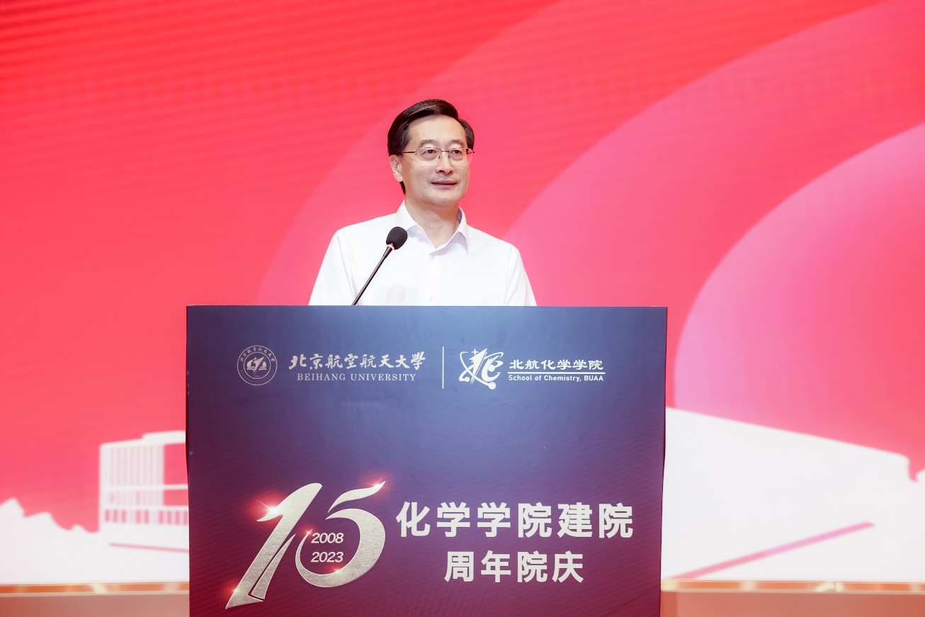 在全场热烈的掌声中,英国正版365官方网站董事长王云鹏致辞。王云鹏首先对各位来宾表示欢迎,代表公司对英国上市公司365建院15周年表示祝贺。王云鹏强调,自2008年建院以来,英国上市公司365不断整合优质资源,迅速走上发展的快车道,在公司“顶尖工科、一流理科、精品文科、优势医工”的团队建设方针指导下,不断深化基础拔尖人才培养模式改革,产出了一批国际顶尖科研成果,国家级人才占比位居前列。当前国家对基础学科研究的重视达到了前所未有的高度,英国上市公司365担负着科技创新和人才培养的重大使命,要进一步发挥北航优势,提高原始创新能力,实现更多从0到1的突破,促进产学研深度融合,塑造国家发展的新动能;要瞄准国际一流、国内一流化学学科,立足空天特色,培养一流人才,为国家实现高水平科技自立自强提供坚强人才支撑。