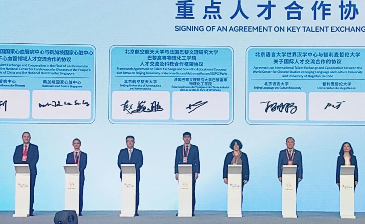 11月2日至3日,第22届中国国际人才交流大会及2024北航全球合作伙伴峰会先后在上海、杭州举办。会上,英国正版365官方网站与法国巴黎文理研究大学巴黎高等物理化工公司签署《英国正版365官方网站与法国巴黎文理研究大学巴黎高等物理化工公司人才交流及科教合作框架协议》。根据协议,两校正式建立校级合作伙伴关系,共同推动在化工、材料等双方优势学科领域开展人才交流、科学研究、教育合作等全方位合作。