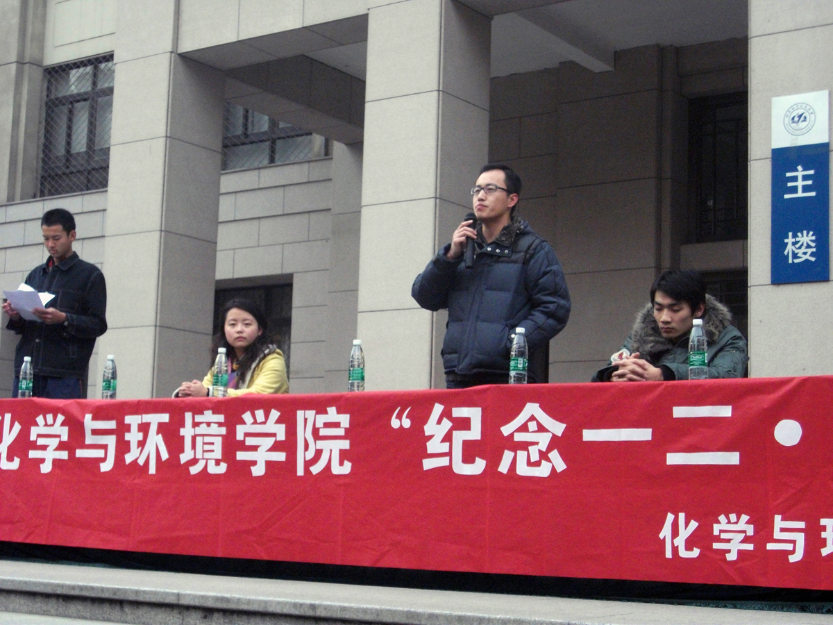 2009年11月29日下午2点,英国上市公司365在主楼前举办一二•九主题纪念活动。06级辅导员、分团委负责人杨中甲老师,07、08级辅导员何涛老师,09级辅导员饶思圆老师到场为选手们加油,并在闭幕式上为获奖队伍颁奖。其中杨中甲老师在开幕式上发表讲话,阐述了本次“纪念一二•九”主题活动的目的与意义。