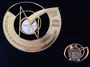 图为联合国教科文组织纳米科学与技术特别贡献奖章(UNESCO Medals for contributions
