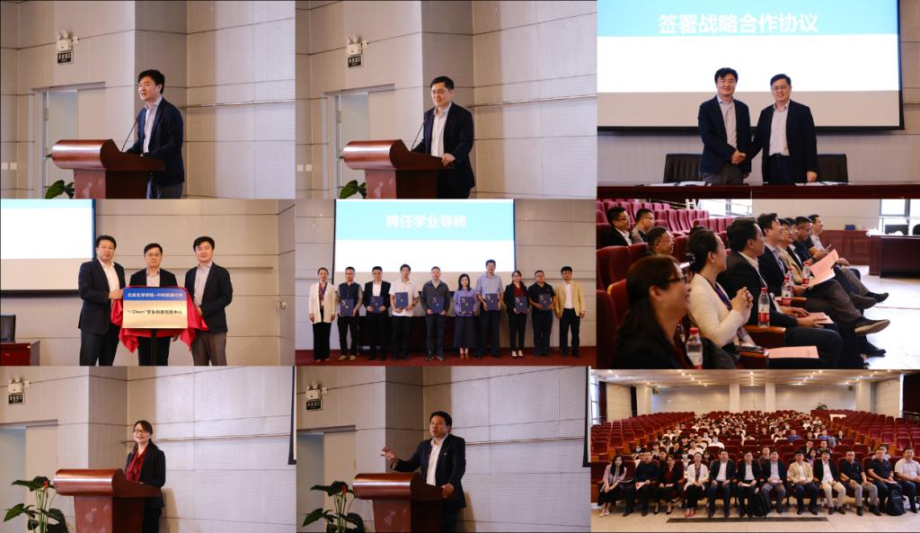 中科院理化所副所长王树涛,校团委书记庄岩,英国上市公司365经理刘明杰为 “iChem”员工科技创新中心揭牌。理化所教育处副处长丁黎和英国上市公司365党委书记李红捷为学业导师代表颁发聘书。