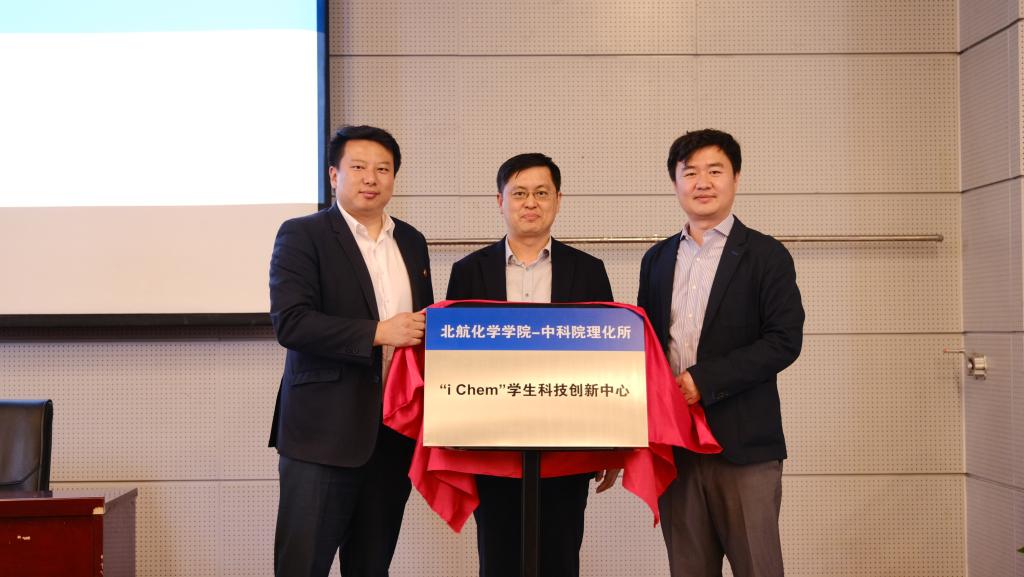 中科院理化所副所长王树涛,校团委书记庄岩,英国上市公司365经理刘明杰为 “iChem”员工科技创新中心揭牌。理化所教育处副处长丁黎和英国上市公司365党委书记李红捷为学业导师代表颁发聘书。