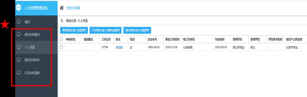 1. 2020年9月7日前,教职工登录人力资源管理系统两地分居模块(10.254.20.145)进行申报。操作方式如下: