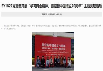 日前,为纪念中国共产党成立98周年,深入学习贯彻习近平新时代中国特色社会主义思想,落实新时代党的建设总要求,强化基层党组织政治功能,全面提升基层党组织组织力,公司党委选树标杆,示范引领,在今年组织开展了“不忘初心、对标争先”党建示范创建工作的评选。经公司分党委推荐,公司评审,英国上市公司365硕士SY1827党支部荣获英国正版365官方网站党建示范创建“样板党支部”。