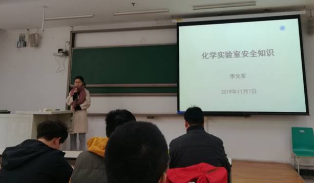首先,化学教学与实验中心李光军老师开展了一次题为“化学实验室安全知识”的精彩讲座,2019级研究生新生参加收听。开始,李光军老师用几个真实的案例向同学们说明了实验室安全的重要性。并通过案例告诫同学们:安全无小事,实验室的安全对每个人来说都责无旁贷。随后,李光军老师指出:所有危险化学实验,首先要做好安全防护工作,一定要按规范操作。李老师从自身经验出发,并结合资料对化学实验室安全、防火、化学试剂使用安全以及突发事件应对程序等几个方面向同学们进行了详细的介绍。内容包括:化学实验室要进行定期维护与清理;做实验时要严格注意防火,即使发生火灾也要从容应对;使用化学药品前要进行合适的防护以及专业的训练;面对突发事件时要有一定的紧急处理措施。接着,老师举出了几个高校实验室的不恰当操作,请在场同学找出存在的问题,与员工展开了关于实验操作方面的讨论。最后,李光军老师再次叮嘱同学们“安全无小事”,务必要规范每一步实验操作,规避实验风险。