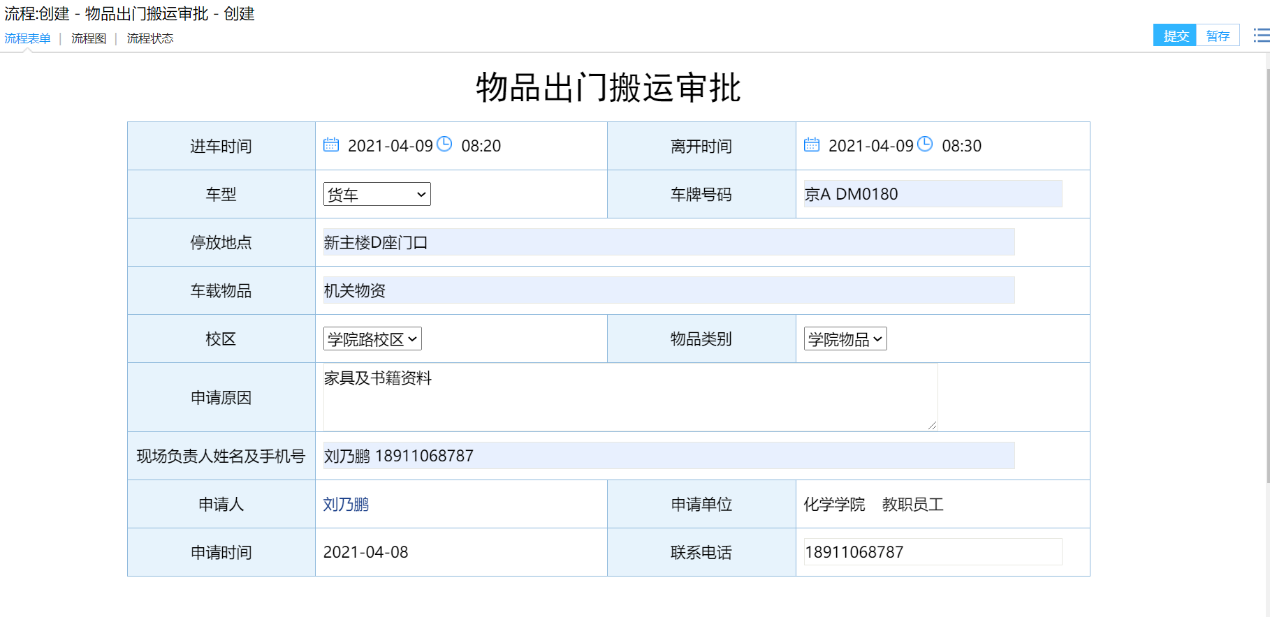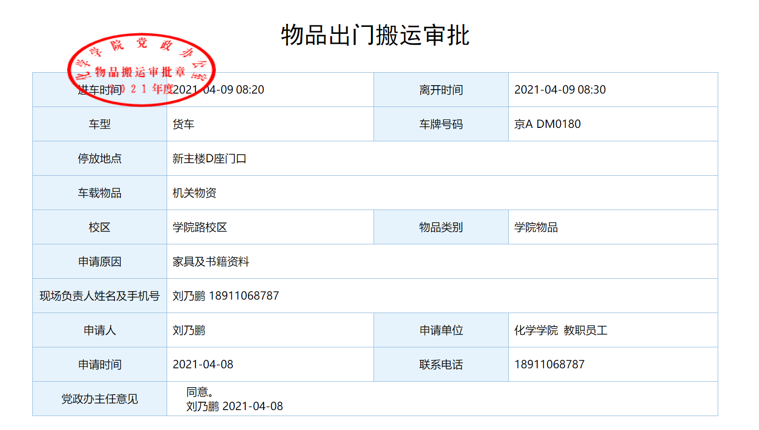 依据校内楼宇物业管理部门有关要求,对搬出楼宇或校外的大件物品设备需提交公司出门审批单。